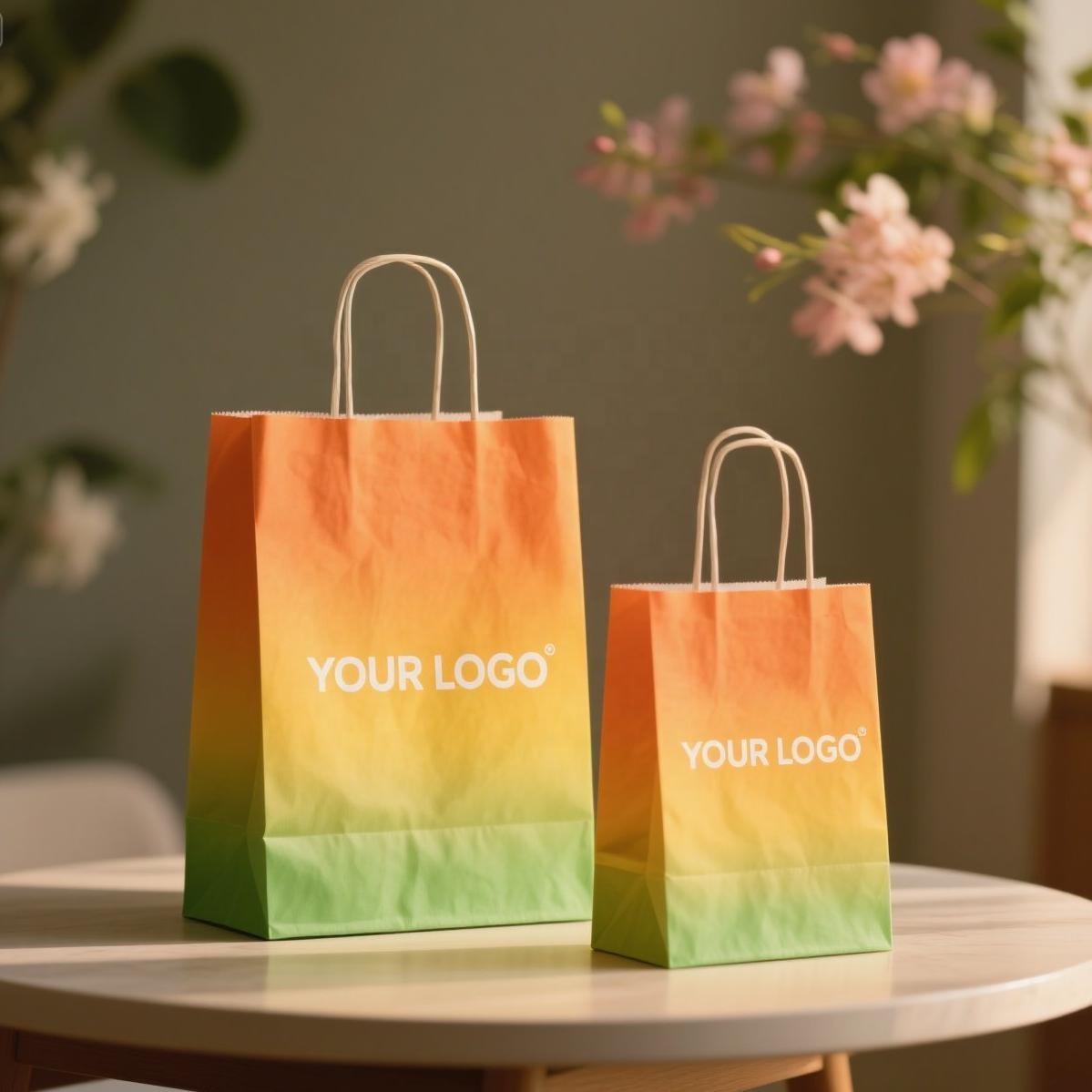 Durable eco-friendly kraft paper bags with handles, perfect for coffee, bakery, and takeaway packaging.