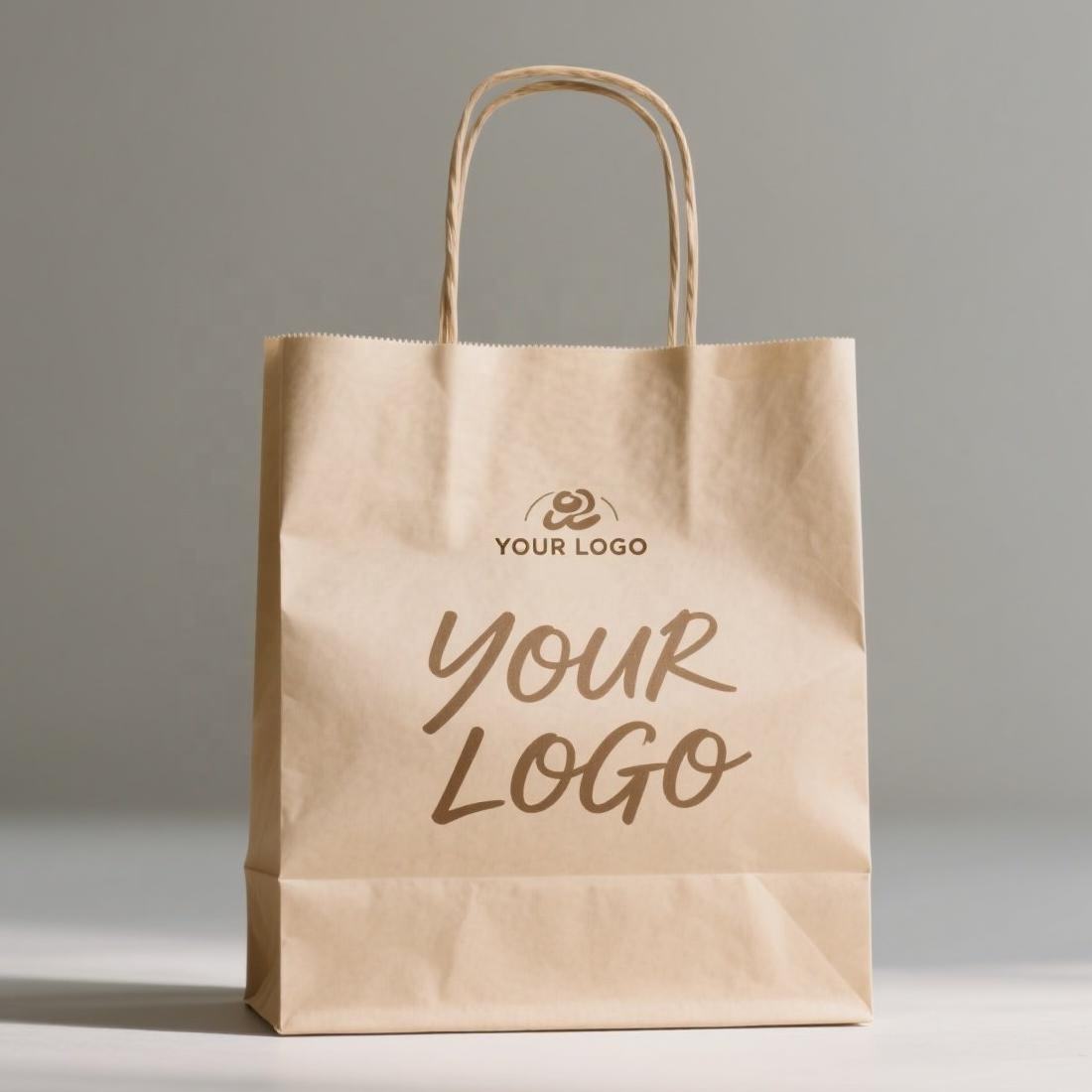 Durable, eco-friendly, and reusable kraft paper bags for restaurant and coffee takeaway food packaging.